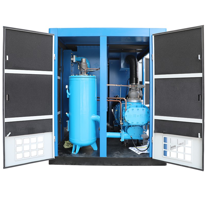Комплексный винтовой компрессор оснащён встроенным охладителем, что позволяет поддерживать низкую температуру на выходе, а также включает встроенный фильтр для удаления воды, обеспечивая хорошую эффективность охлаждения осушителем. Встроенный осушитель воздуха позволяет удобно подать сжатый воздух, обеспечивая стабильное давление.