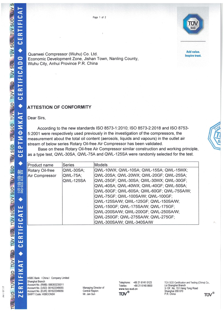 Для решения данной задачи компания Цюаньвэй одной из первых начала профессиональную разработку низкодавленческих винтовых воздушных компрессоров, способных непосредственно обеспечивать сжатым воздухом с оптимальным рабочим давлением.