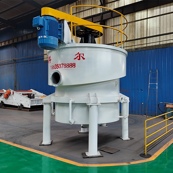 Оборудование для приготовления пульпы из фильтр-прессового угольного шлама относится к области технологий обогащения угольных шламов и предназначено для решения проблемы сложности контроля концентрации пульпы традиционными методами. Конструкция включает смесительный бак, приводной электродвигатель и перемешивающее устройство, установленное внутри бака. В нижней части смесительного бака с обеих сторон расположены подводящая труба для воды и разгрузочная труба для пульпы, а на верхней части внешней стенки бака установлен разгрузочный желоб, входное отверстие которого соединено с переливным отверстием на стенке бака. Приводной электродвигатель закреплен на опорной балке в верхней части смесительного бака, а перемешивающее устройство подвешено к опорной балке и соединено с приводным двигателем через передаточный механизм.