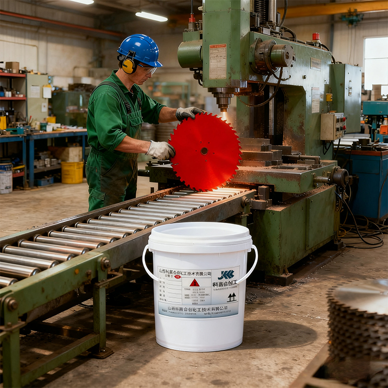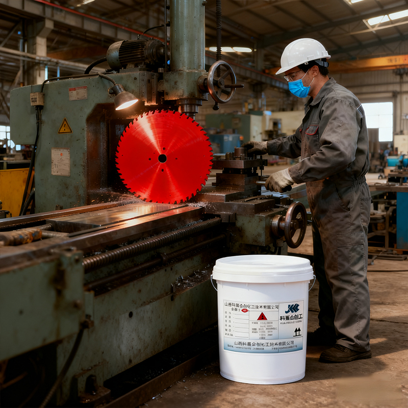 Жаростойкая эмаль для пильных дисков "Кэцзя Хэчуан" KJHC-022 изготовлена на основе термоотверждаемой эпоксидной смолы с добавлением износостойких пигментов, ударопрочных добавок и отвердителя, разработана по специальной высокотемпературной рецептуре. Механизм действия заключается в полном сшивании смолы с отвердителем при высокой температуре 180-200°C с образованием высокотвердого, износостойкого плотного покрытия, способного эффективно противостоять высоким температурам, трению и ударному воздействию стружки, возникающим в процессе резки, защищая основу диска от окислительной коррозии и одновременно улучшая внешний вид диска. Продукт специально разработан для различных типов пильных дисков: для деревообработки, резки металла, камня. Адаптирована к технологии высокотемпературного нанесения в производстве пильных дисков, подходит для стальных, твердосплавных основ и других материалов пильных полотен. По техническим показателям: твердость покрытия достигает 5H, ударная прочность ≥40 см, адгезия соответствует 0 классу, термостойкость до 200°C, износостойкость (750 г/500 оборотов) ≤0,01 г. Эффективно продлевает срок службы пильного диска, обеспечивая стабильность в процессе резки.