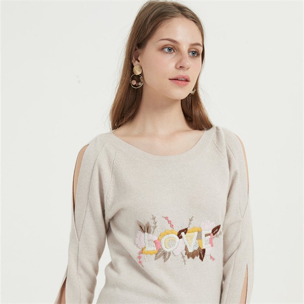 Оптовая OEM дизайн женщин высокое качество кашемир свитер с ручной вышивк