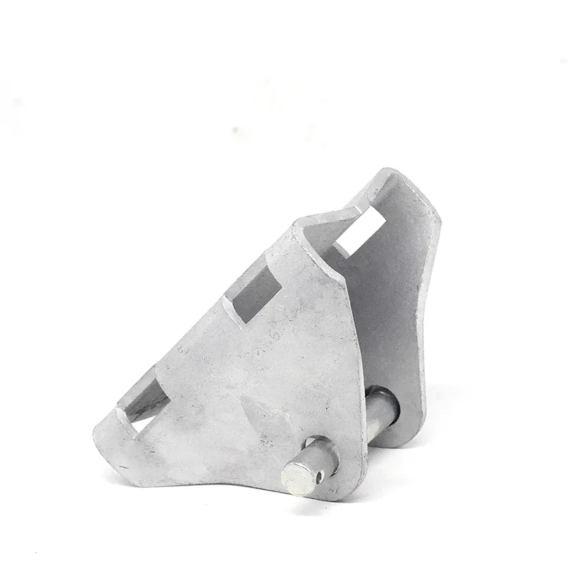 Состоит из двух частей: верхняя часть имеет зажим для подвесного троса (C-образный или U-образный, чтобы захватывать стальную струну и предотвращать соскальзывание крюка), а нижняя часть содержит канавку для удержания кабеля (изогнутое углубление, которое соответствует поверхности кабеля, чтобы зафиксировать его положение).