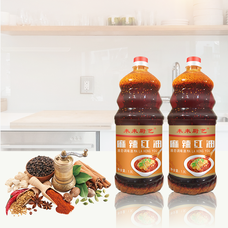 Состав: соевое масло, красный перец, сычуаньский перец, зеленый лук, имбирь, кунжут, пищевые добавки (пищевой краситель из красного перца, пищевой ароматизатор).