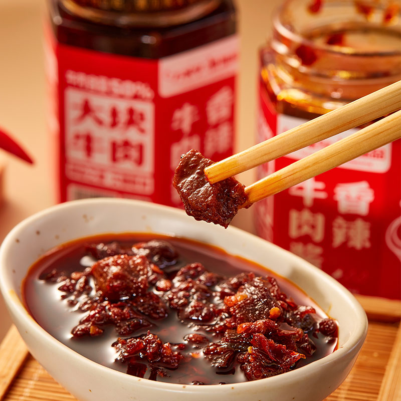 Состав: Говядина (добавлено 50%), растительное масло, хлопья чили, заваренный уксус, глутамат натрия, чеснок, зеленый лук, соль, имбирь