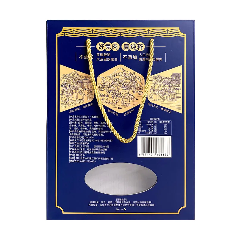 Тщательно отобранная вырезка кролика, нарезанная вручную, промытая и очищенная, затем тушится по традиционному рецепту с пятью специями. Затем нарезанный кубиками кролик погружается в бульон медленного приготовления, содержащий более десяти натуральных специй, включая бадьян, корицу и лавровый лист, и тушится при постоянной температуре, позволяя насыщенному вкусу специй гармонично сочетаться со сладостью мяса кролика. После тушения нарезанный кролик проходит низкотемпературную обработку, сохраняющую свежесть мяса, что позволяет сохранить его нежность. Размер 158 г идеально подходит для 1-2 человек, что делает его идеальным гарниром к основным блюдам, напиткам или перекусом во время кофе-брейка. Банку удобно брать с собой, и она готова к употреблению прямо из банки, позволяя наслаждаться аутентичными вкусами тушеного мяса бачжун, Сычуань, в любое время и в любом месте. Каждый кусочек — это яркая интерпретация сути сычуаньской кухни.
