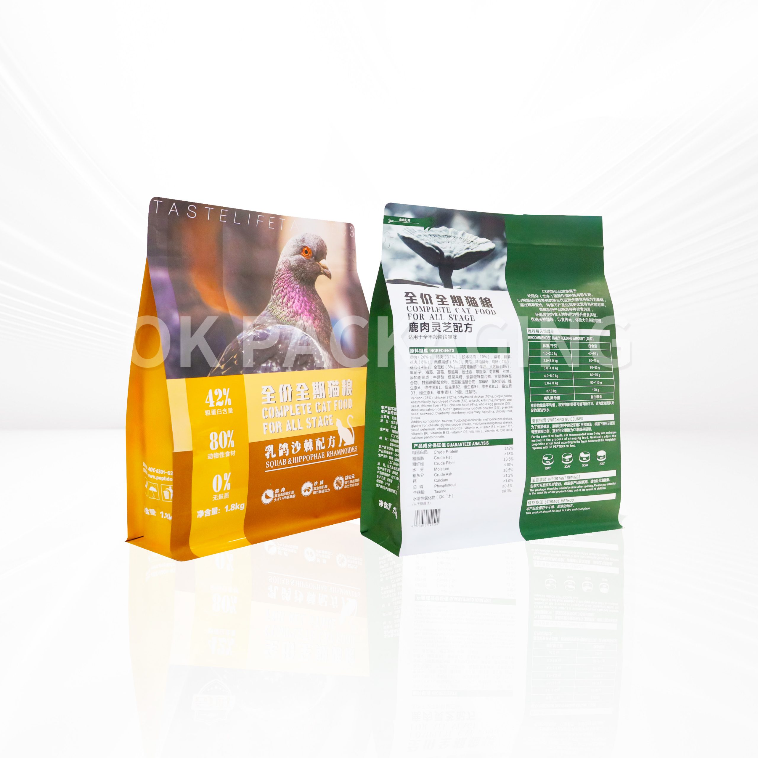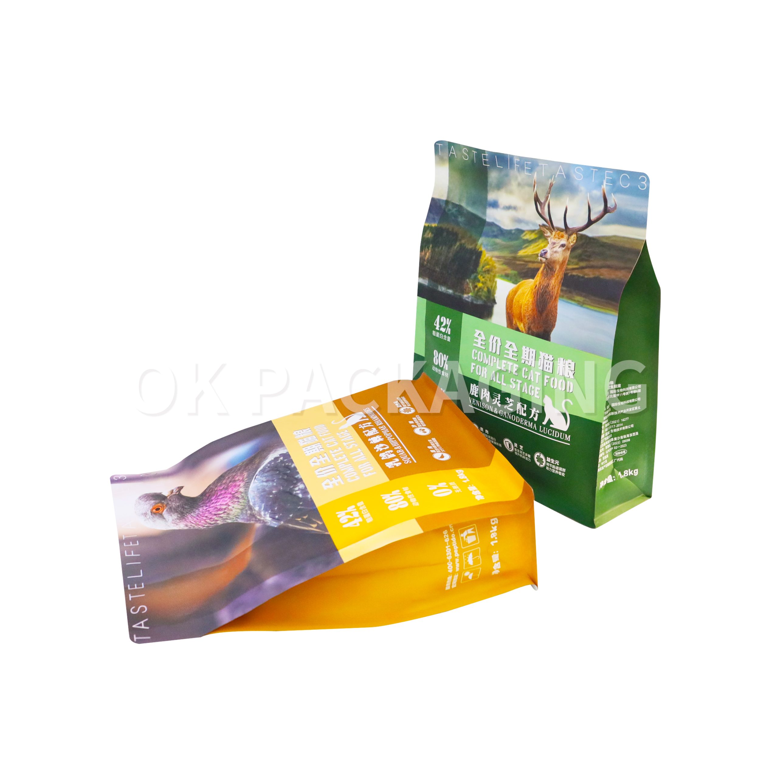 1. Пакеты для корма для домашних животных используются для всех видов упаковки кормов для домашних животных. Пакеты изготавливаются с многоразовой застежкой-молнией для повторного использования. Чтобы защитить еду внутри, все пакеты для корма для домашних животных изготавливаются из высокобарьерного материала, чтобы гарантировать их герметичность. имеют более длительный срок хранения.