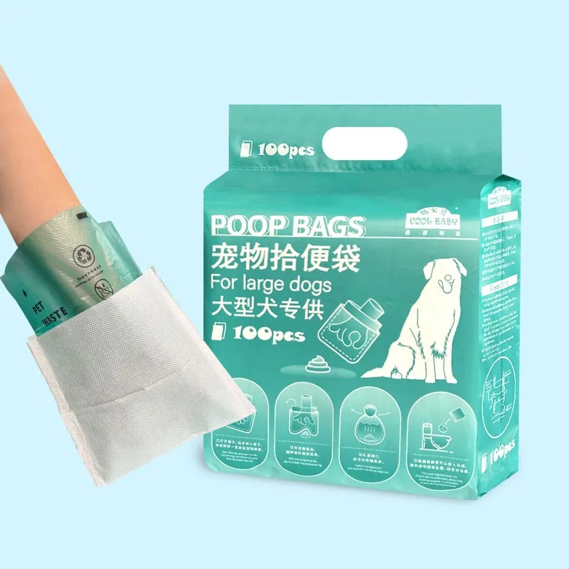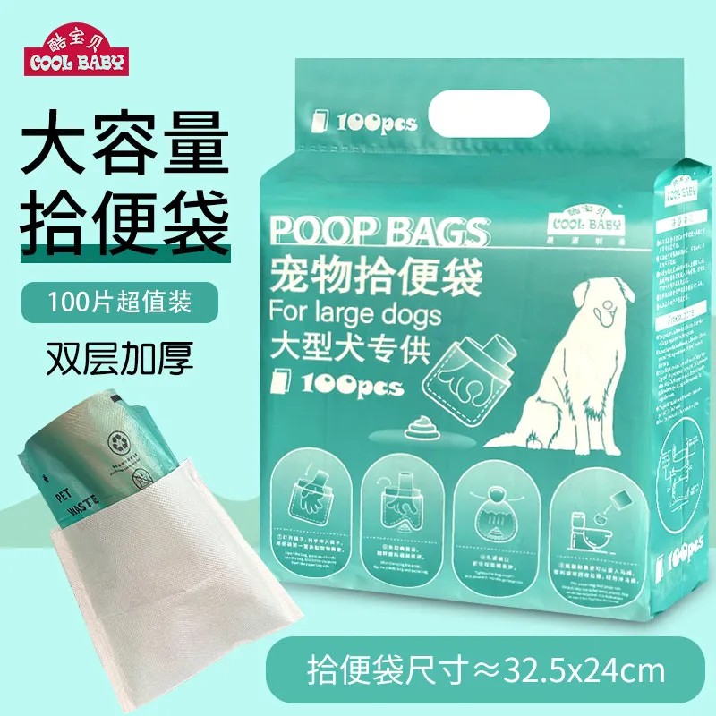 Это пакет для уборки за крупными собаками - увеличенного размера, двухслойный, усиленный. Его особенности: большой и удобный для выворачивания, изолирует запах, практичный в использовании. Конструкция продукта состоит из слоя бумаги и слоя пластика: бумага является водорастворимой, растворяется при контакте с водой и может быть смыта в унитаз, а пластиковый пакет производится из биоразлагаемого материала, что обеспечивает экологическую безопасность.