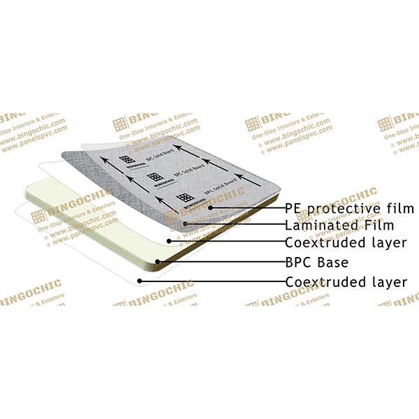 BPC Solid Board — это бамбуково-пластиковый композитный сплошной лист, тщательно изготовленный методом высокотемпературной экструзии. Он состоит из трех частей: соэкструдированный слой + основание BPC + соэкструдированный слой + ламинированная пленка + защитный слой из полиэтилена.