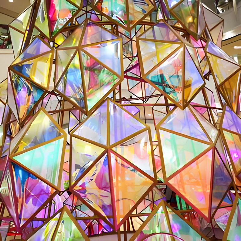 Переливающееся стекло — это декоративное стекло с динамическим изменением цвета, достигаемым за счет специального оптического покрытия. Его ключевая особенность заключается в способности отражать разнообразные цветовые оттенки в зависимости от угла обзора и освещения, создавая эффект волшебной игры света и тени.