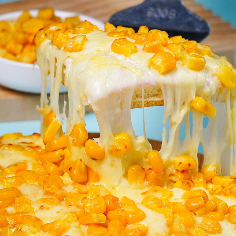 Состав: пшеничная мука, кукурузные зерна, тертый сыр моцарелла (сырный продукт), питьевая вода, майонез, растительное масло, кулинарный жир, сухое цельное молоко, дрожжи, сахар, соль, витамин С, стевиозид