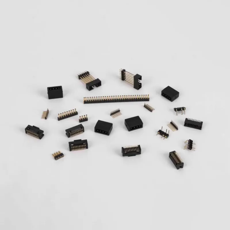 Пин-хедеры, разновидность соединителей, английское название: pin header. Данный тип соединителей широко применяется в электронных платах PCB в электронике, электрооборудовании и приборах. Их функция заключается в том, чтобы служить мостом в местах обрыва цепи или между изолированными цепями, выполняя задачу передачи тока или сигналов. Обычно используются в комплекте с панельными разъемами, образуя соединение плата-к-плате; или используются вместе с клеммами электронных кабельных жгутов, образуя соединение плата-к-проводу; также могут самостоятельно использоваться для соединения плата-к-плате. Поскольку различные продукты требуют разных спецификаций, пин-хедеры также имеют множество моделей итипоразмеров. Согласно стандартам индустрии электронных соединителей для пин-хедеров, классификация осуществляется следующим образом: по шагу в основном делятся на пять категорий: 2.54мм, 2.00мм, 1.27мм, 1.00мм, 0.8мм; по количеству рядов бывают однорядные, двухрядные, трехрядные и т.д.; по типу монтажа существуют поверхностный монтаж SMT (горизонтальный/вертикальный), выводной монтаж DIP (прямой/изогнутый). Панельные разъемы, разновидность соединителей, английское название: female header. Являются универсальным соединительным устройством, широко используемым в электронике, электрооборудовании и приборах, в основном выполняют функцию передачи тока или сигналов. Обычно используются в комплекте с пин-хедерами, образуя соединение плата-к-плате.