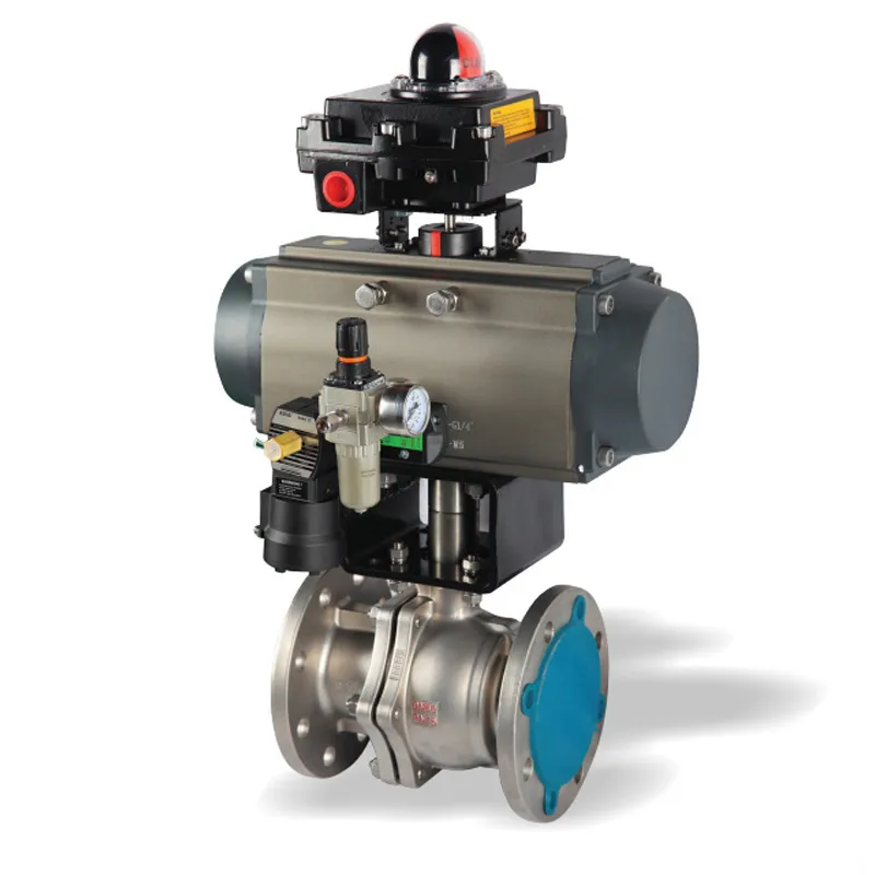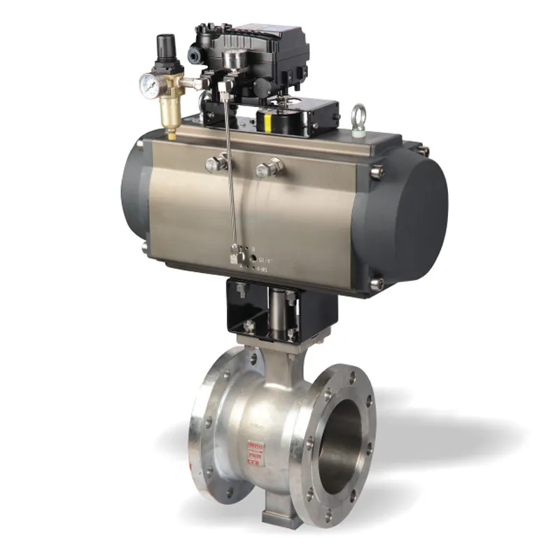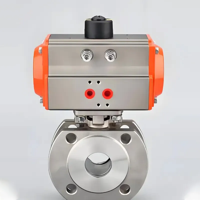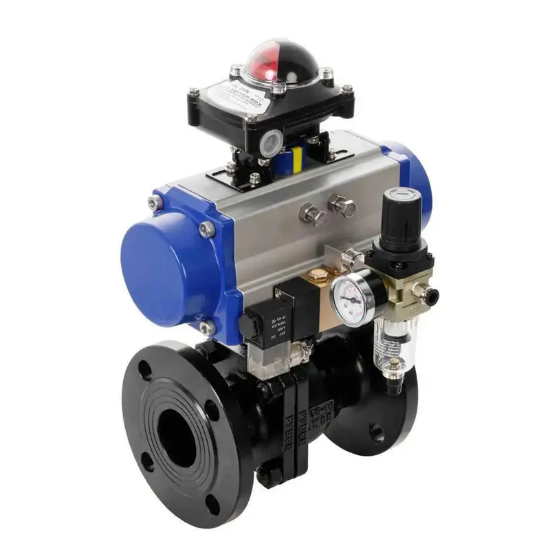 Основная часть изделия состоит из корпуса клапана, шарика, седла и пневматического привода. Корпус клапана имеет интегрированную или трехкомпонентную конструкцию, а внутренний шарик изготовлен с высокой точностью для обеспечения гладкой поверхности и превосходной герметичности. Седло изготовлено из износостойких, коррозионно-стойких полимерных или металлических материалов, что обеспечивает плотный контакт с шариком. Во время работы сжатый воздух поступает в пневматический привод (поршневого или мембранного типа) через соленоидный клапан. Это приводит в действие привод, который создает выходной крутящий момент, поворачивая шарик на 90° вокруг штока клапана для открытия или закрытия клапана. Когда отверстие шарика совпадает с направлением потока, среда проходит через него; когда оно перпендикулярно, достигается герметичное перекрытие. Это обеспечивает быстрое реагирование и точную, контролируемую работу.