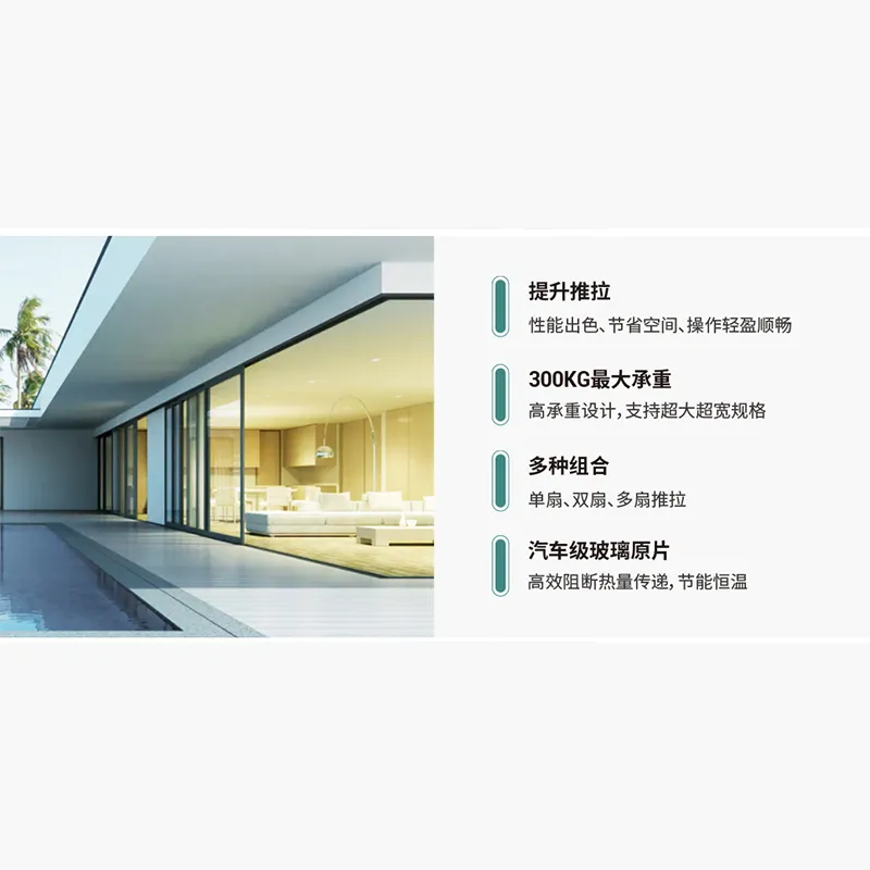 Усовершенствованная герметизация: При закрытии дверное полотно «поднимается» вниз, обеспечивая плотное прилегание к дверной коробке и направляющим. В сочетании с многоступенчатыми уплотнительными прокладками эффективно изолирует уличную пыль, дождь и шум. По сравнению с традиционными раздвижными дверьми, показатели звукоизоляции, теплоизоляции и водонепроницаемости значительно улучшены, что уменьшает передачу разницы температур между помещением и улицей и снижает энергопотребление кондиционера.