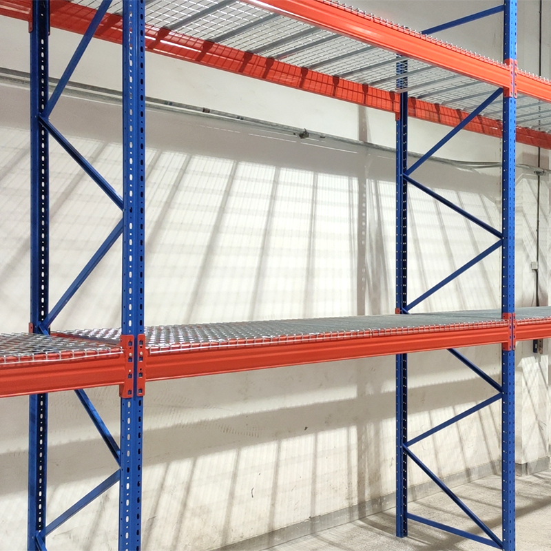 Балки: обычно изготавливаются из двойной С-образной стали, сваренной встык, для формирования закрытой коробчатой балочной конструкции с крюками или стопорными штифтами, соединенными со стойками на обоих концах. После сборки со стойками он может нести товары на поддонах и имеет хорошее сопротивление изгибу.