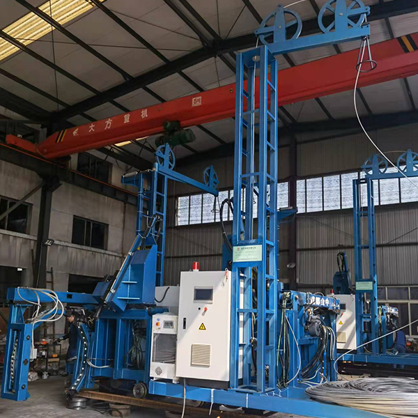 11.Тяговый механизм возобновляет подачу прутков, повторяя предыдущие операции для выполнения второй обвязки. Оборудование вновь повторяет операции для выполнения третьей обвязки. Гидравлический горизонтальный стол возвращается в исходное положение.