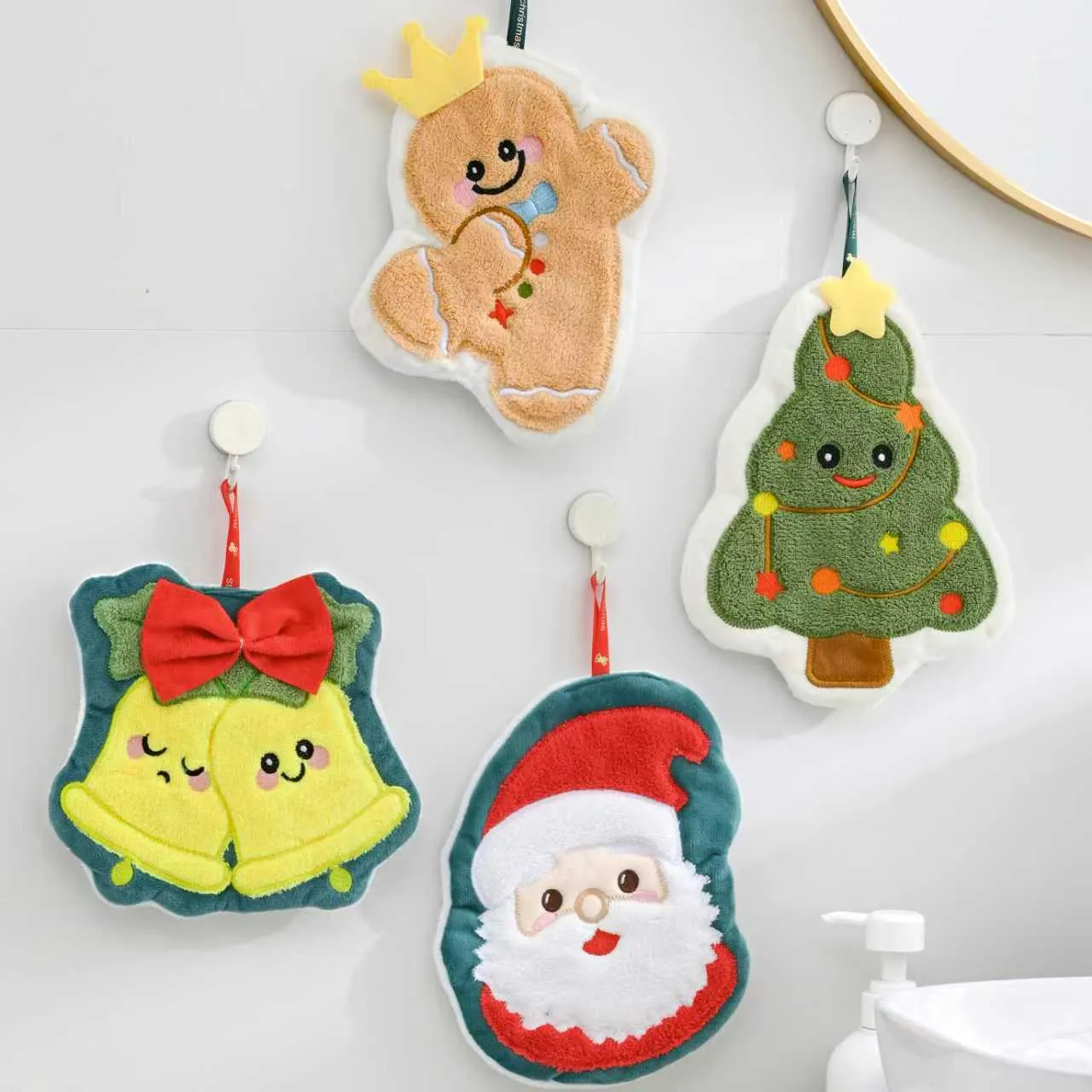 Рождественские полотенца для рук – Прямая продажа с фабрики. Впитывающие и быстросохнущие носовые платки из кораллового флиса для кухни и ванной, которые можно повесить (оптом)