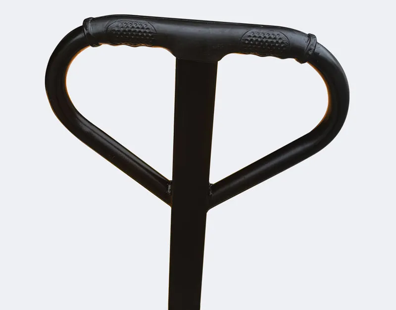 Гидравлический цилиндр через направляющие колеса с обеих сторон рычага приводит в действие усиленную цепь большой тяговой способности, поднимая вилы, утолщенная и удлиненная цепная база обеспечивает устойчивость груза.