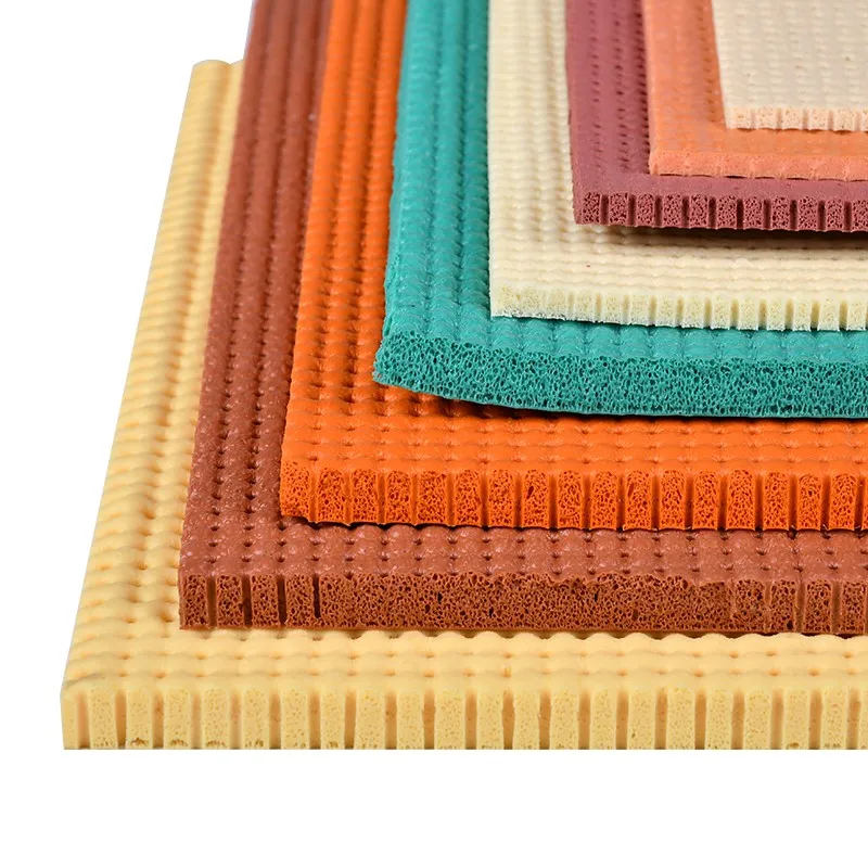 Иглопрокалываемая вспененная силиконовая плита представляет собой вспененный листовой материал с тонкой иглопрокалываемой структурой, изготовленный из силиконовой основы по специальной технологии. Она обладает превосходной химической стабильностью, присущей силикону, хорошей термостойкостью, высокой эластичностью и гибкостью, нетоксична и экологична, имеет низкую остаточную деформацию при сжатии, ровную поверхность и хорошую равномерность, иглопрокалываемая структура увеличивает содержание внутреннего воздуха, создавая лучшие каналы для рассеивания тепла. Специальная иглопрокалываемая структура придает ей некоторые особые функции (фильтрация и разделение: благодаря своей уникальной иглопрокалываемой структуре, иглопрокалываемая вспененная силиконовая плита может эффективно фильтровать жидкости (газы или жидкости), задерживая частицы, примеси и т.д., одновременно позволяя жидкости беспрепятственно проходить. В химической, фармацевтической, пищевой и питьевой отраслях промышленности может использоваться для удаления твердых частиц, микроорганизмов и других загрязнителей из жидкостей или газов, обеспечивая разделение и очистку веществ. Адсорбционная функция: сам силикон обладает определенными адсорбционными свойствами, а иглопрокалываемая вспененная структура дополнительно увеличивает удельную поверхность, усиливая его адсорбционную способность по отношению к некоторым веществам (таким как влага, органические растворители, молекулы запаха и т.д.). Может использоваться в процессах сушки, дезодорации, обесцвечивания, в некоторых средах, требующих контроля влажности, может адсорбировать влагу из воздуха, поддерживая сухость окружающей среды; при обработке пахнущих выбросов или сточных вод может адсорбировать пахнущие вещества, улучшая качество воздуха или воды.) одновременно играя роль амортизации и виброизоляции, теплоизоляции и сохранения тепла, изоляционной защиты и т.д.