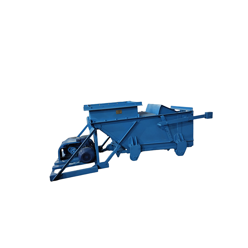 Принцип работы: двигатель соединен с редуктором через эластичную муфту, выходной вал редуктора приводит в движение кривошипно-шатунный механизм, а кривошипно-шатунный механизм тянет наклонную нижнюю плиту для совершения линейного возвратно-поступательного движения на роликах, чтобы равномерно выгружать уголь или другие сыпучие гранулированные и порошкообразные материалы с малой абразивностью и малой вязкостью из загрузочного оборудования в приемное оборудование.