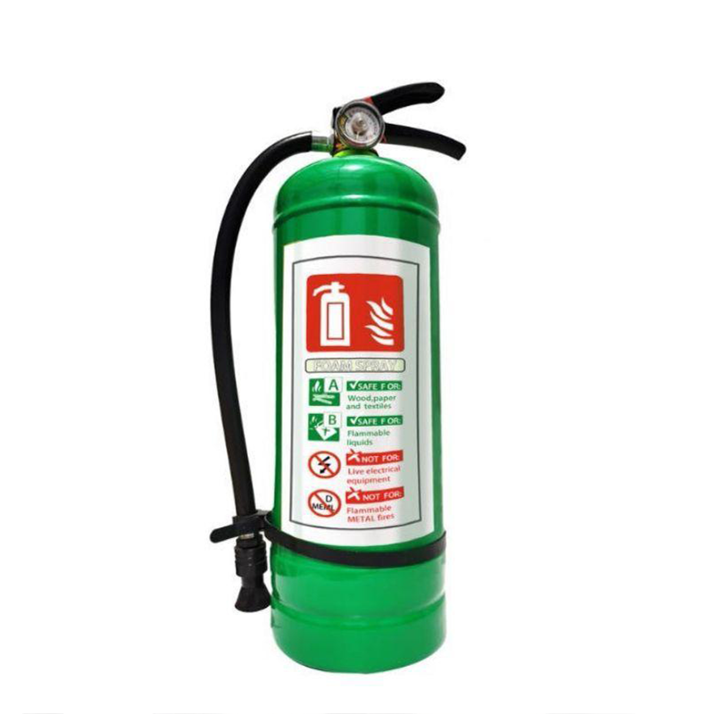 В пенном огнетушителе есть два контейнера с двумя жидкостями. Это растворы сульфата алюминия и бикарбоната натрия. Эти два раствора не соприкасаются друг с другом и не вступают в химическую реакцию. (Когда пеногаситель нужен, его переворачивают, и два раствора смешиваются, выделяя большое количество углекислого газа. Помимо этих двух реактивов, в огнетушитель добавляют пенообразующее вещество. При включении выключателя пена вытекает из огнетушителя и покрывает горящий предмет, изолируя его от воздуха и понижая температуру, что позволяет потушить огонь.