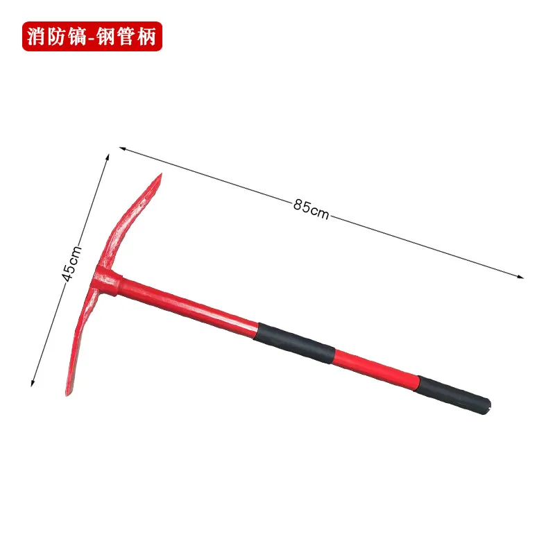 Противопожарная кирка - важный инструмент для пожаротушения и аварийного демонтажа зданий. Она состоит из двух частей: головки кирки и рукояти кирки.Кирка целиком изготовлена из высокоуглеродистой стали, которая после закалки приобретает чрезвычайно высокую твердость. Один конец представляет собой острое лезвие (используется для долбления и разрушения почвы), а другой конец - плоское лезвие (используется для рытья). Кромка острая и износостойкая.- прочная, и ее нелегко обжать или сломать; рукоятка кирки в основном изготовлена из высокопрочного массива дерева или стекловолокна. Рукоятка из массива дерева защищена от коррозии и влаги, рукоятка из стекловолокна легкая и ударопрочная, поверхность корпуса рукояти рукоятка оснащена нескользящими стропами, обеспечивающими надежный захват, соединение между рукояткой и киркой дважды усилено заклепками или болтами, что обеспечивает высокую несущую способность, а общий вес регулируется на уровне 2-3 кг с учетом эффективности приложения усилия и портативности.