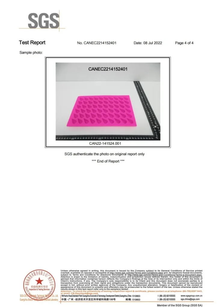 ISO 9001:2015/ REACH/ROHS/MSDS/LFGB/F D A