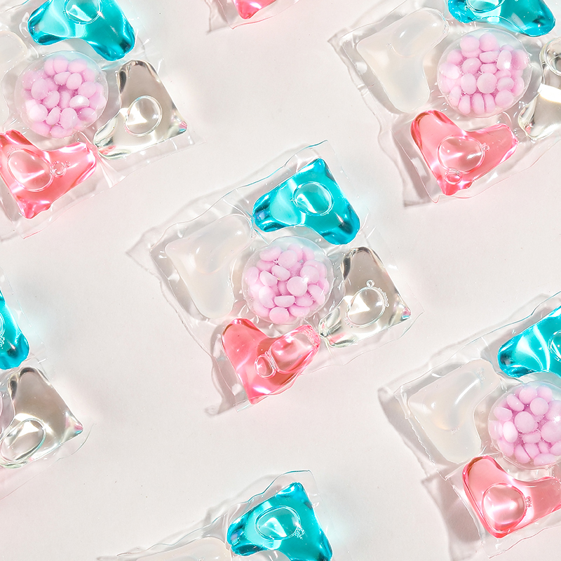 Бытовые моющие средства, такие как гранулы для стирки и ароматизаторы