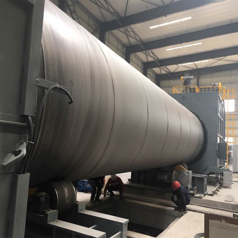 B. Что касается стальной трубы диаметром Φ159-Φ2800 мм, мы принимаем роликовый конвейер, угол между роликами регулируется, скорость движения и скорость вращения можно регулировать с большим диаметром; абразивный диск принимает нижнее распределение абразива, эффективность очистки высока, результат хороший.