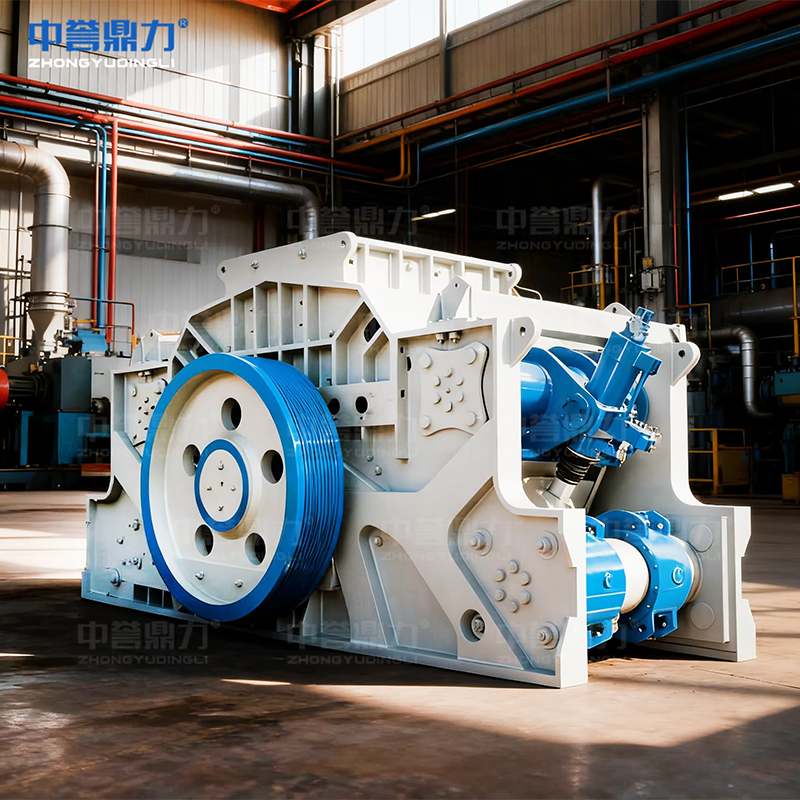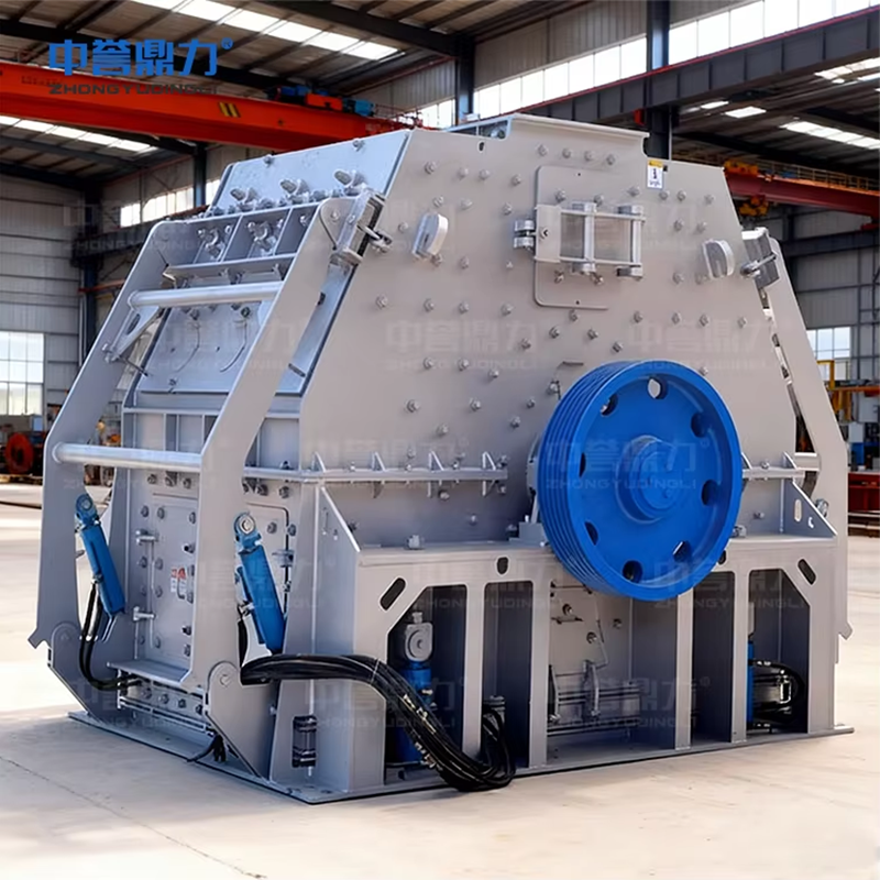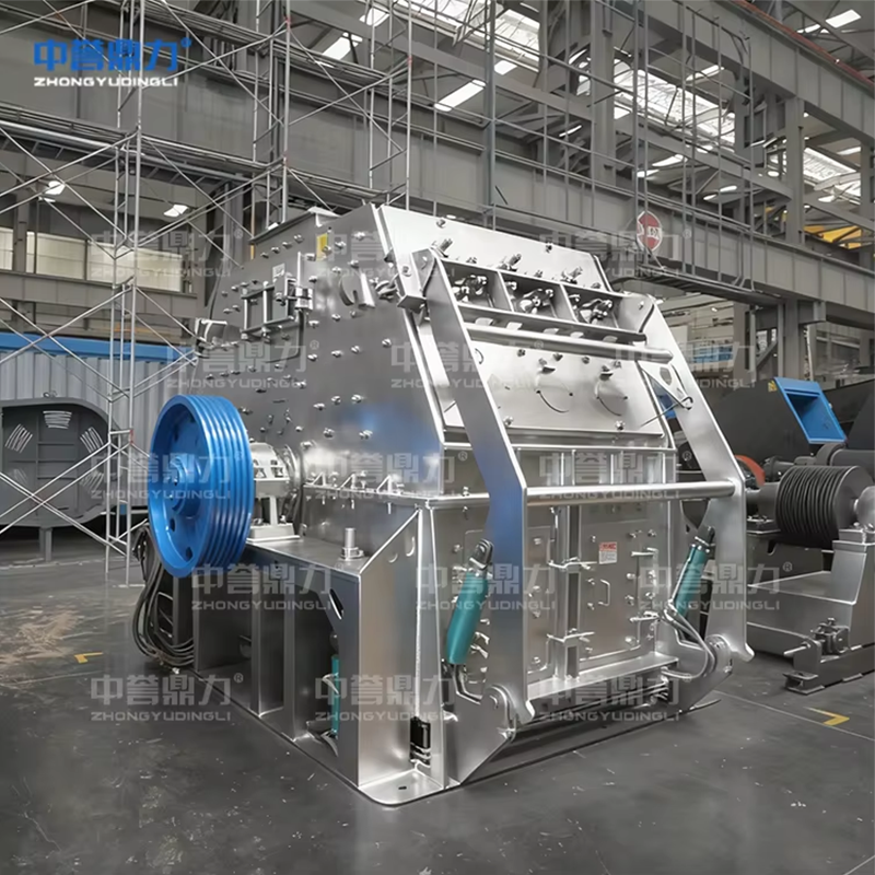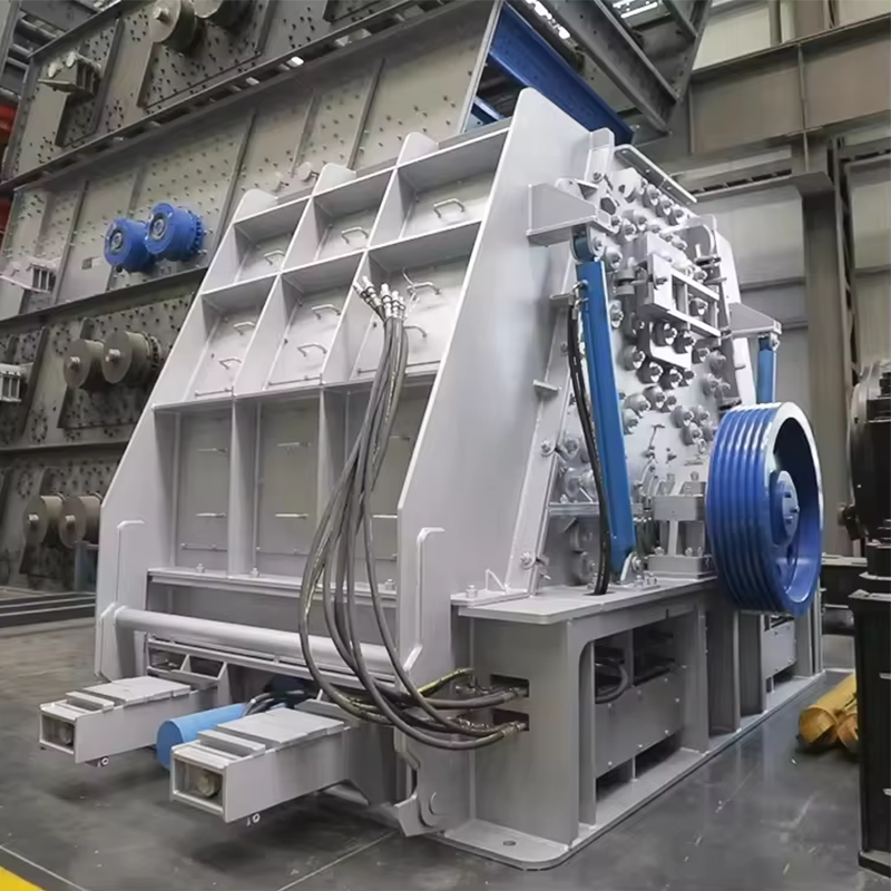 1.Конструкция камеры дробилки симметрична. Ротор может работать определённое время по часовой стрелке, после чего переключается на вращение против часовой стрелки, что позволяет использовать обе стороны молотков без необходимости их переворачивания. Это обеспечивает равномерный износ футеровочных плит и колосниковых решёток с обеих сторон. Основные и боковые футеровочные плиты закреплены высокопрочными болтами с шестигранной головкой. Отверстия под болты во футеровках выполнены по глубокому типу, что предотвращает износ головок болтов. Зазоры колосниковых решёток могут подбираться в зависимости от требуемой крупности выходного материала. Колосниковые решётки и их рама выполнены с плоским сопряжением, что упрощает монтаж и замену. Регулировка рамы решётки осуществляется гидравлически, экономя время и силы; конструкция с гидравлическим открытием крышки облегчает техническое обслуживание. Диск молотков имеет усиленную защитную кромку, обеспечивая износостойкость и надёжность. При необходимости замены молотков или их осей достаточно открутить болты под осевой упорной пластиной, после чего пластина опускается, и ось молотков может быть извлечена через сквозную перегородку, что делает процесс быстрым и удобным.