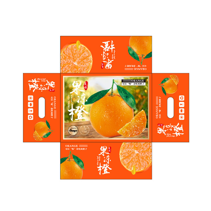 Упаковочный материал изготовлен из разлагаемой экологически чистой бумаги, которая приятна на ощупь и отражает заботу бренда об окружающей среде. В текстовой части используется простой и привлекающий внимание шрифт, подчеркивающий такие преимущества апельсинового желе, как «тонкая кожица, легко чистится, не оставляет шлака во рту», что позволяет потребителям быстро понять преимущества продукта и побудить их купить и попробовать его.
