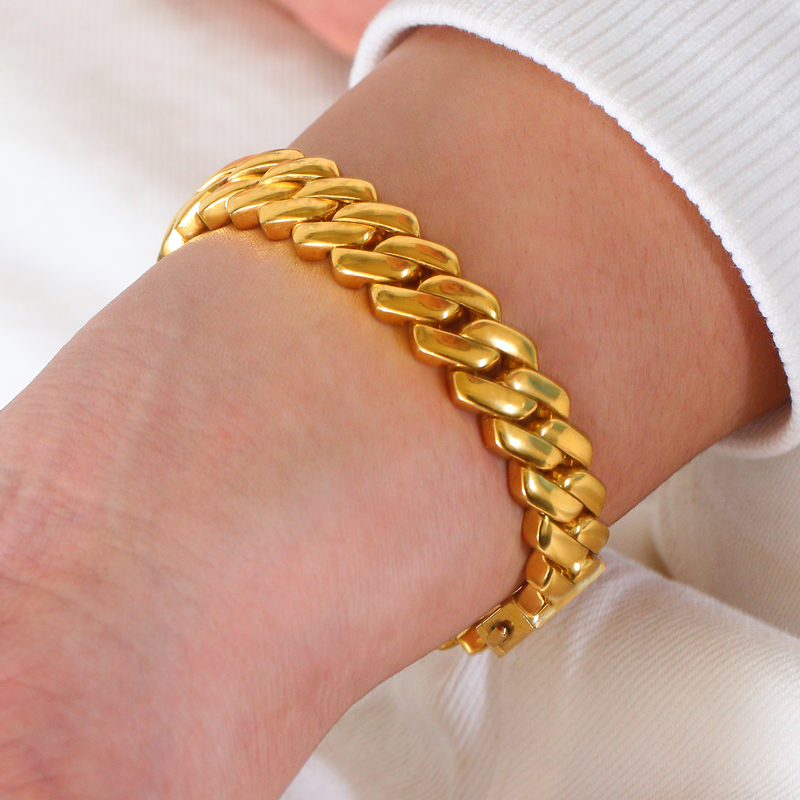Радиана округлая и прилегает к запястью, тип цепи квадрат и круг имеет степень, свободное движение без сдержанности; Положительная и обратная форма дизайна последовательна, красота ремесла одинакова внутри и внутри, 360° без мертвых углов изысканна.