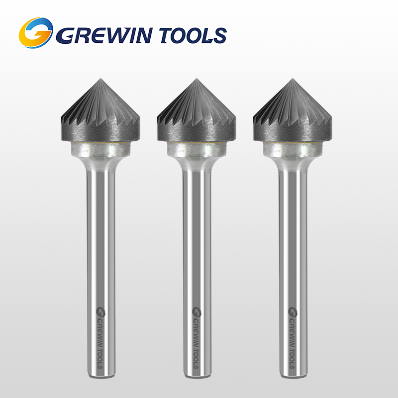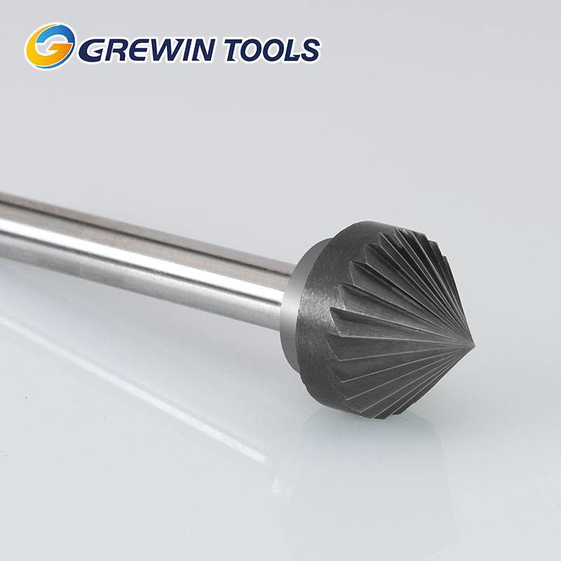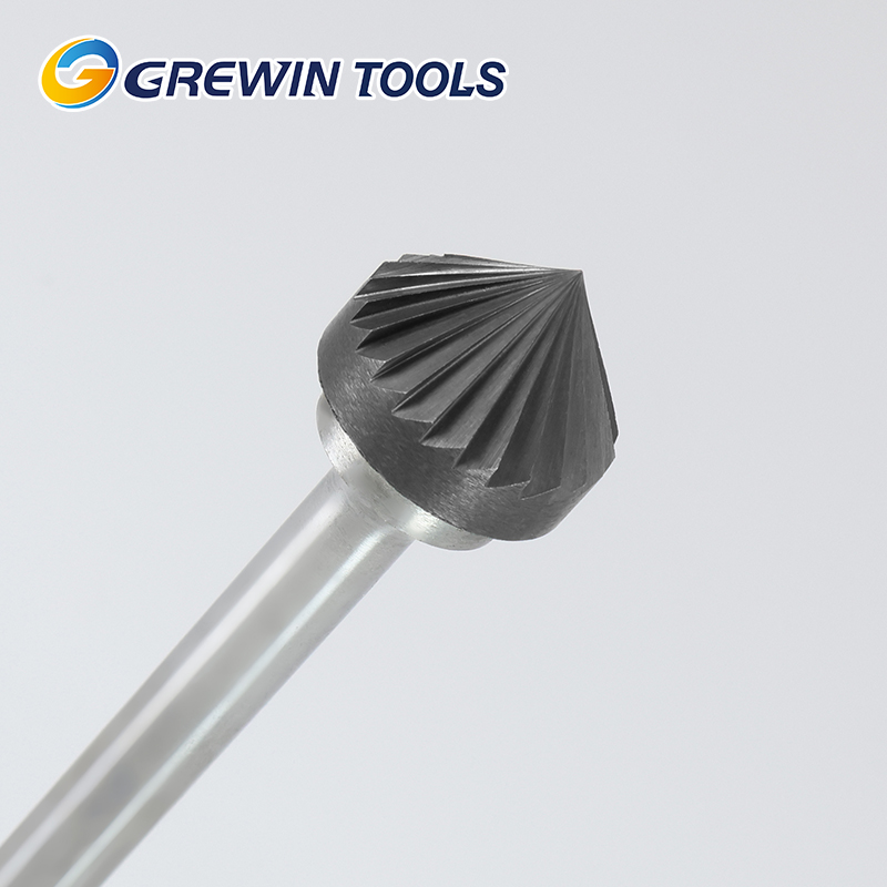 Ротационный бор Grewin Jin Niu K-типа имеет стандартную прямую коническую форму: острый наконечник, равномерно утолщающийся к основанию. По форме он схож с бором C-типа, но использует односпиральную режущую кромку.