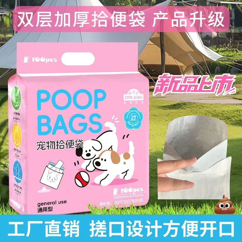 Это пакеты с рифлёным краем для уборки за животными, которые решают проблему сложного раскрытия из-за сухости рук. Данные двухслойные усиленные пакеты отличаются большим размером и удобством в использовании, эффективно изолируют неприятные запахи. Являются незаменимым аксессуаром для выгула собак, делая процесс уборки простым и комфортным. Конструкция продукта состоит из слоя бумаги и слоя пластика: бумажный слой выполнен из водорастворимой бумаги, которая быстро растворяется в воде и является смываемой, а пластиковый слой производится из биоразлагаемого материала, что обеспечивает экологическую безопасность.