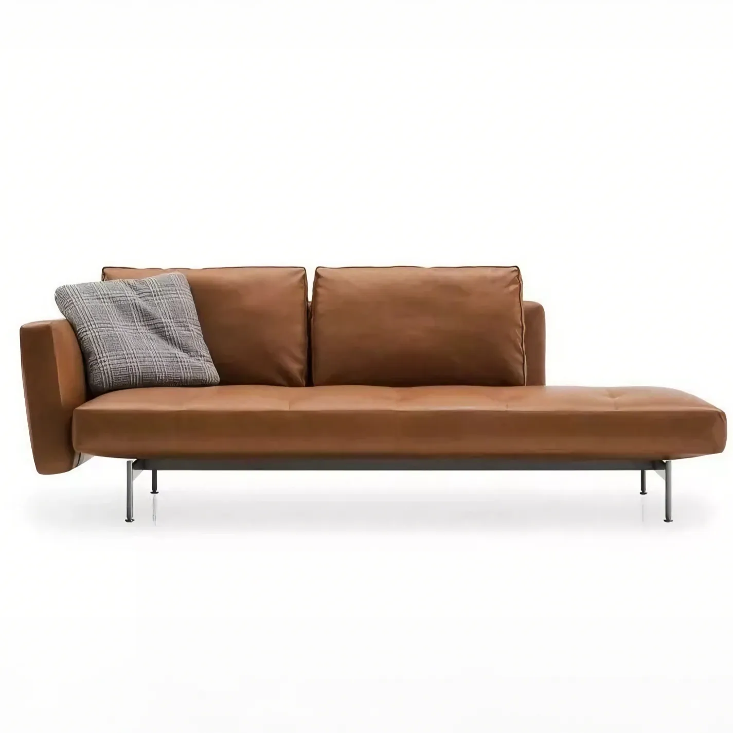 Дизайн начинается с современной системы сидений, отличающейся тщательно продуманным формальным балансом. Сиденья трех размеров (175, 210 и 270 см) с обволакивающими или линейными спинками и подлокотниками различных размеров гармонично сочетаются, создавая диван, адаптированный к пространству и вкусу заказчика. Систему дополняет элемент шезлонга (105 x 135 см), который может использоваться как завершающий элемент линейной композиции, а благодаря более объемной спинке и подлокотникам может использоваться самостоятельно или в паре с другим шезлонгом, образуя диван с глубокой посадкой. Детали подушек и опорного основания придают дизайну лёгкость. Подушка сиденья имеет изысканную модульную строчку с шагом 35 или 45 см; спинные подушки двух размеров обрамлены профилированными кантами. Опорное основание системы состоит из перекрёстных брусьев со скруглёнными стальными ножками, соединёнными перекладиной. Вся конструкция покрыта оловянной лаковой краской. Система также включает диван-кровать (150 x 210 см) — единственный в коллекции B&B Italia, использующий сиденья и спинки других диванов. Съёмные правый или левый подлокотник могут служить изголовьем, когда благодаря сдвигу сиденья и откидыванию спинки диван превращается в односпальную кровать.