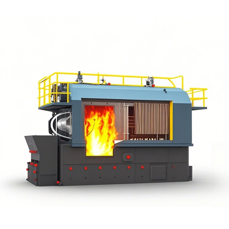 Котел на биомассе серии SZL разработан в соответствии с международными передовыми технологиями и опытом цепной топки котла со сливной трубой, принимая горизонтальную двухбутылочную, продольную структуру расположения. Котел состоит из верхней и нижней частей, верхняя часть является поверхностью нагрева тела, а нижняя часть является оборудованием для сжигания. Передняя часть корпуса котла окружена водоохлаждаемыми стенками, верхняя часть которых соединена с цилиндром котла, а нижняя часть соединена с коробкой коллектора, образуя камеру сгорания для поглощения лучистого тепла топки; пучки конвективных труб расположены между верхним и нижним цилиндрами котла на заднем конце, а высокотемпературные дымовые газы после сжигания топлива в топочной камере и поперечной очистки нагретых поверхностей конвективных пучков вторичным возвратом направляются в индивидуально расположенный экономайзер, а затем в пылеуловители для сброса через дымовые трубы.