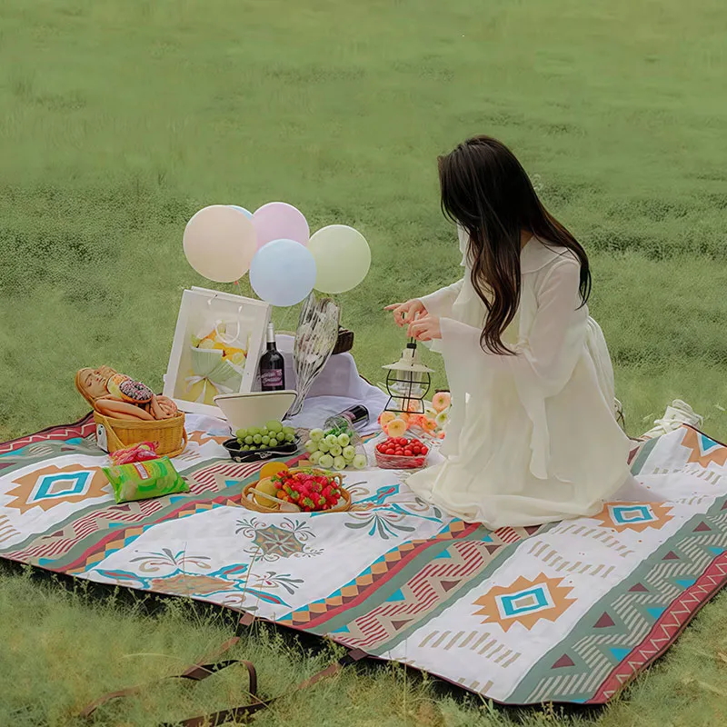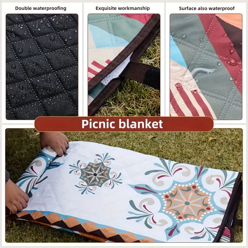 1 шт, увеличенный квадратный пикниковый коврик размером 200×200 см, вмещает 6-8 человек сидя или 3-4 человека лежа. Усилен липучками, имеет ручку для переноски. Подходит для различных сценариев: кемпинг, пикник, пляж и др. Цельная упаковка для хранения, двойное оксфордское дно, влаго- и теплоизоляция. Ультразвуковое закрепление ваты, можно многократно стирать в стиральной машине, готов к использованию после раскрытия, упаковка в усиленный полиэтиленовый пакет, рулонный дизайн, портативный и легко складывается, безопасно без формальдегида, тепло- и влагоизоляция, не прилипает песок и трава, мягкий, можно стирать в стиральной машине, серия "этнический стиль". Водоотталкивающая ткань из весенней тафты, влаго- и грязеотталкивающая, износостойкая, проста в уходе — масляные пятна и загрязнения легко удаляются протиранием. Поддерживаются различные способы транспортировки.