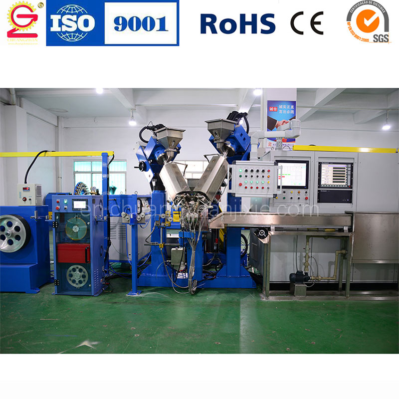 Используются три экструдера диаметрами шнеков φ80+150+100 мм в синхронной работе, посредством трёхслойной экструзионной головки обеспечивается формирование «проводниковый экран – изоляционный слой – изоляционный экран» одновременно. Это сокращает количество производственных операций и повышает эффективность. Головка поддерживает гибкое переключение между однослойным, двухслойным и трёхслойным режимами, удовлетворяя разнообразные производственные потребности.
