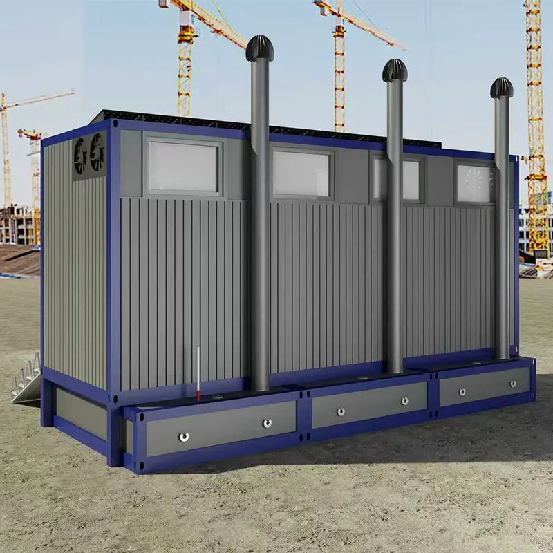 Разборные модульные туалетные кабины применяются на строительных площадках, массовых мероприятиях под открытым небом, выставках и других сценариях с временным скоплением людей. Конструкция основана на модульном принципе с использованием легких высокопрочных материалов: антикоррозийных стальных каркасов или экологичных панелей, частично с термоизоляционными сэндвич-панелями, что обеспечивает адаптацию к различным внешним условиям, включая низкие и высокие температуры. В разобранном состоянии объем конструкции значительно сокращается, обеспечивая удобную транспортировку грузовым автотранспортом и прицепами, решая проблему сложной перевозки традиционных мобильных туалетов. Внутреннее оснащение включает базовые компоненты: напольные унитазы, умывальники, системы освещения и вентиляции. Усовершенствованные модификации дополнительно комплектуются водосберегающими устройствами, накопительными емкостями для сточных вод или модулями экологической переработки, что снижает воздействие на окружающую среду и исключает зависимость от стационарных канализационных сетей. Благодаря возможности быстрого развертывания с характеристиками мгновенной разборки и транспортировки, а также мгновенного монтажа и использования, данные решения становятся ключевыми санитарно-техническими объектами в различных временных и аварийных ситуациях.