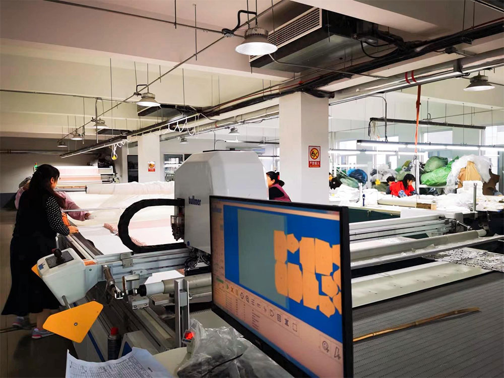 Наша рабочая сила превышает 150 квалифицированных специалистов: 1. Торговый отдел — 6 сотрудников 2. Дизайнерский отдел — 5 сотрудников 3. Образцовая комната — 5 сотрудников 4. Раскройный цех — 12 сотрудников 5. Швейный цех — 120 сотрудников, на каждой линии по 20 сотрудников 6. Упаковочный цех — 15 сотрудников 7. Отдел контроля качества — 12 сотрудников