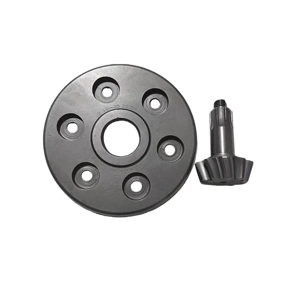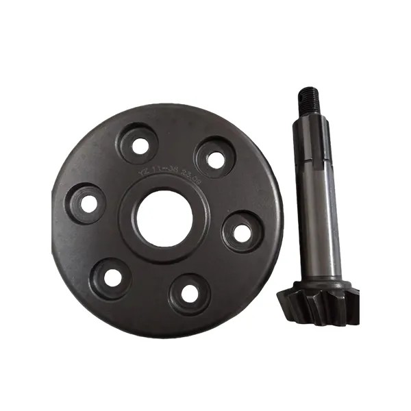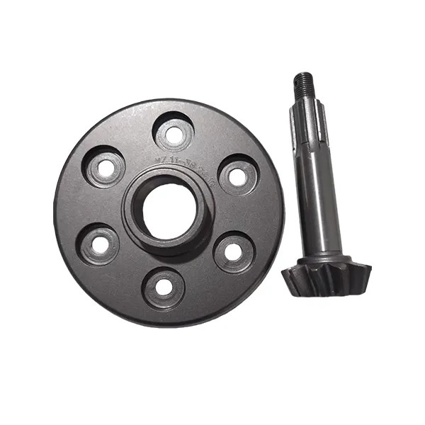 Спирально-коническая шестерня. Коническое зубчатое колесо. Комплектующая для трёхколёсных и мотоциклов. Металлическая литая деталь. Зубчатая поверхность имеет коническую форму, отличающуюся от профиля прямозубых колёс. Ширина обода велика, что позволяет выдерживать более высокий крутящий момент и нагрузку. Малый шаг зубцов позволяет увеличить их количество и облегчает зацепление. Надёжная работа, длительный срок службы, износостойкость, низкий уровень шума, плавная и ровная передача, малая вибрация. Обычно используется в трансмиссиях трёхколёсных транспортных средств и мотоциклов. Являясь важным компонентом в механических передачах, благодаря своим уникальным конструктивным особенностям и превосходным передаточным характеристикам, играет незаменимую роль во многих отраслях промышленности, являясь ключевым элементом современного промышленного производства.