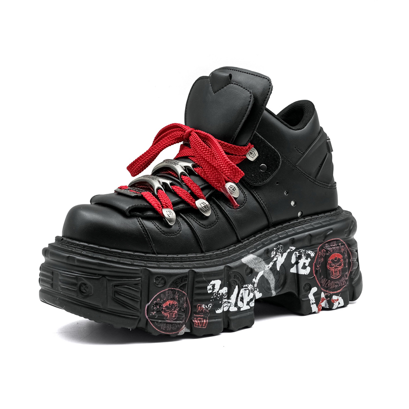 Эти спортивные ботинки с толстейшим подошвом и узором черепа сделаны из синтетической кожи с уникальным узором черепа и красными ремнями, что выражает индивидуальный городской стиль. Подошва из ТПР обеспечивает хорошую прочность и сцепление с поверхностью, а толстый подошва увеличивает комфорт и устойчивость, что делает их подходящими для повседневного ношения и занятий спортом.