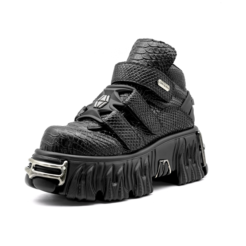 Эти спортивные ботинки с толстейшим подошвом и узором крокодила сделаны из синтетической кожи с узором крокодила, что добавляет им модный вид. Подошва из ТПР обеспечивает хорошую прочность и сцепление с поверхностью, а толстый подошва увеличивает комфорт и устойчивость, что делает их подходящими для повседневного ношения и занятий спортом.