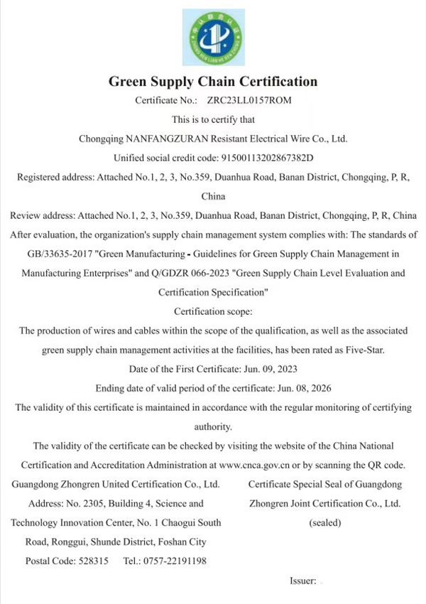 Основанная в 1998 году, ООО Чунцин Южные Огнеупорные Кабели и Провода является высокотехнологичным предприятием, специализирующимся на кабелях, сочетая научные разработки, производство и продажи.Компания является одним из крупнейших и самых известных брендов проводов и кабелей в юго-западном регионе и имеет ведущие внутренние возможности производства, поставок и маркетинга различных типов проводов и кабелей.