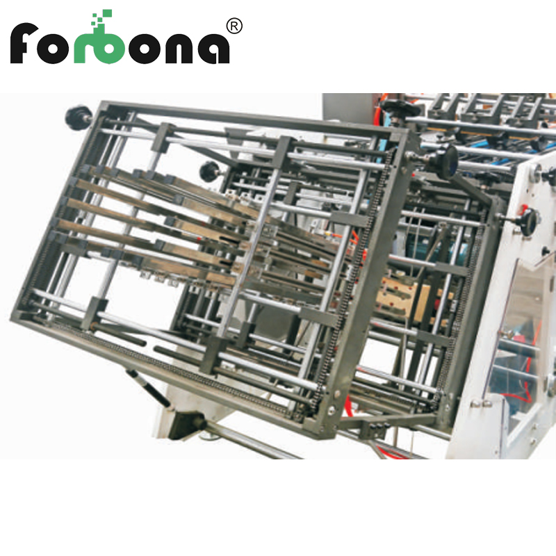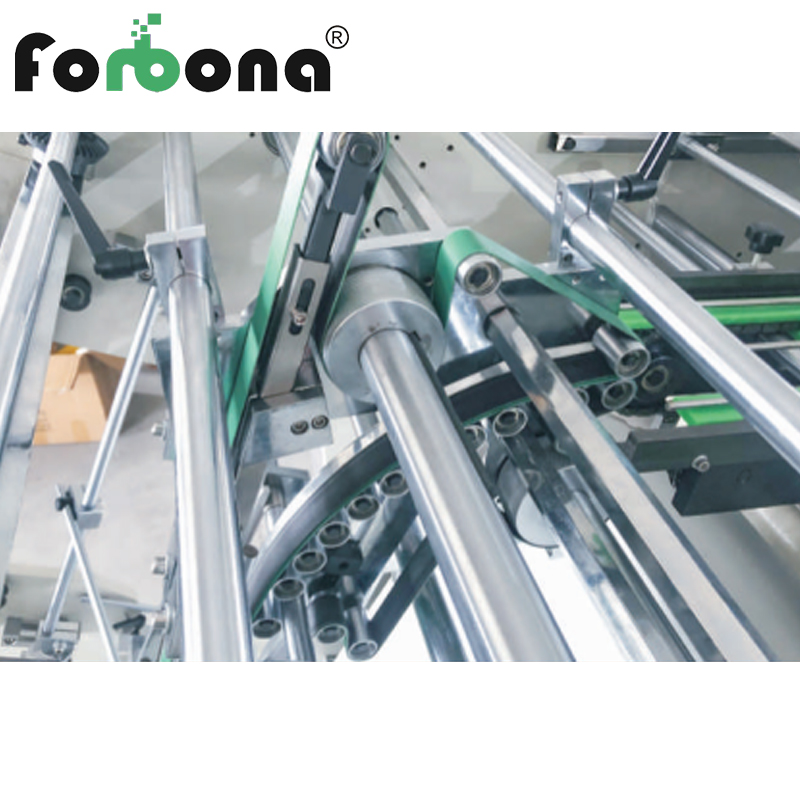Оборудование оснащено микрокомпьютером, системой управления ПЛК, сервоприводной подачей, частотным преобразователем для регулировки скорости, системой вакуумного захвата, автоматическим нанесением клея, автоматическим счётчиком бумажной ленты и цепным приводом.