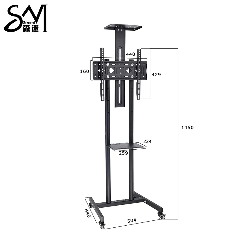 Эта тележка для телевизора имеет четыре варианта высоты: 1050 мм, 1150 мм, 1250 мм и 1350 мм, и клиенты могут регулировать подставку под телевизор на колесах в соответствии с фактическими потребностями.