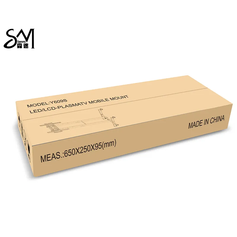 Переносная тумба под телевизор Y609S — это небольшая подставка на колёсах. Она подходит для телевизоров с диагональю 32–55 дюймов и креплением VESA 400*400 мм. Переносная тумба выдерживает нагрузку до 25 кг, что соответствует большинству требований к небольшим телевизорам. Тележка регулируется по высоте и имеет четыре варианта высоты. Объём упаковки тележки — её главное преимущество: объём каждого комплекта составляет всего 0,015 м³. Эта мобильная тумба под телевизор — улучшенная версия старой модели YN609. Самым большим изменением и одновременно самым большим преимуществом этой модели является объём упаковки 0,015 м³. Уменьшив размер, мы также гарантируем, что качество и функциональность тумбы под телевизор на колёсах соответствуют требованиям к установке большинства соответствующих телевизоров.