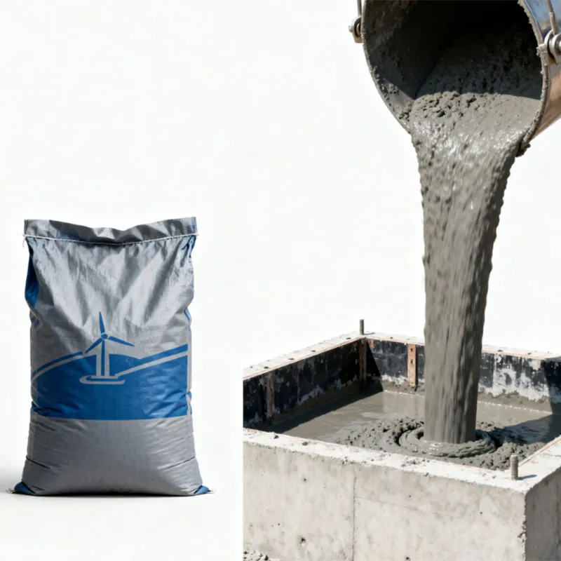 Тампонажная смесь для фундаментов ветроэнергетических установок — это новый продукт, разработанный для тампонирования фундаментов ветротурбин наземных ветроэнергетических установок (заливка фундаментов генераторов), то есть для устройств, монтируемых с использованием преднапряженной технологии. Продукт состоит из высокопрочного вяжущего компонента, суперпластифицирующего компонента, расширяющегося компонента и местного сырья. После смешивания с водой он обладает такими свойствами, как текучесть, пригодная для заливки, отсутствие расслоения, отсутствие водоотделения, высокая ранняя прочность, высокая конечная прочность, отсутствие усадки и незначительное расширение.