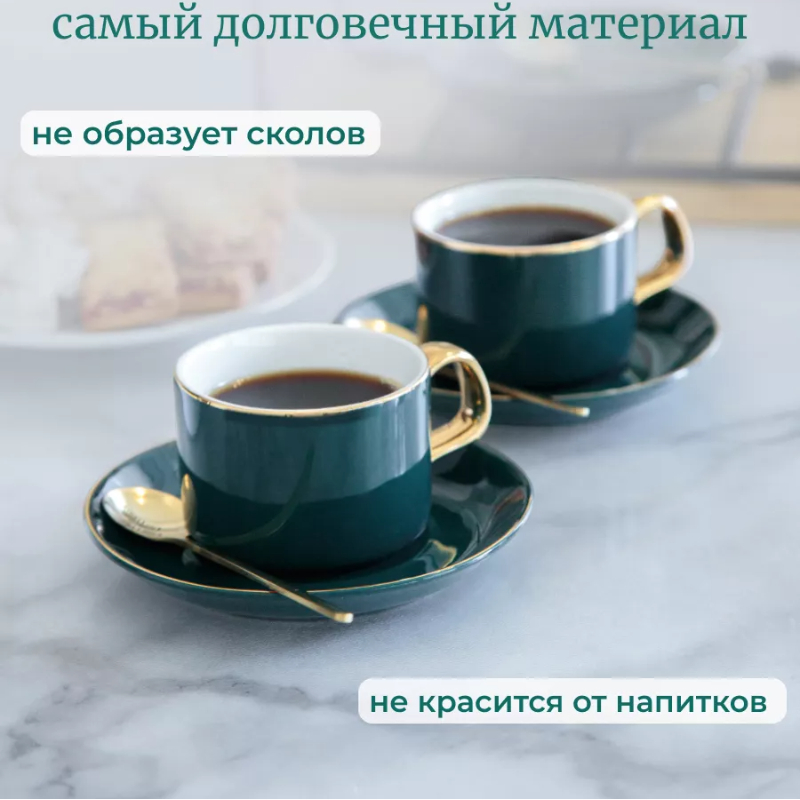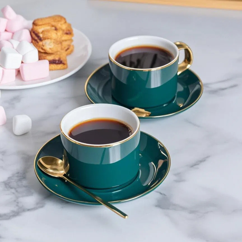 Стиль: Корпус чашки имеет классическую форму, с зеленой внешней стороной и золотым контуром, резким цветовым контрастом, простым и элегантным дизайном, не теряющим своей изысканности, и очень европейским легким роскошным стилем. В комплект входят чашки, блюдца и ложки того же цвета, и общая координация хорошая.