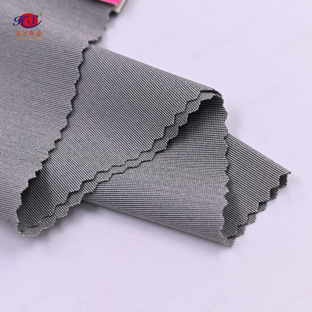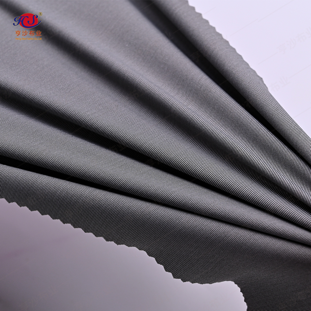61165# T бамбуковое угольное волокно смешано с 84% нейлона и 16% спандекса. Бамбуковое угольное волокно равномерно распределяется в процессе прядения смеси мастербатча (содержание 5%), что придает ткани уникальную функцию поглощения запаха. Проверено, что уровень адсорбции аммиака составляет 78%, что подходит для потоотделения после тренировки. Вес 160 г/м² достигается с помощью процесса 22 иглы/дюйм утка плоской иглы, а плоскостность поверхности достигает 98%. Черная мастербатч бамбукового угольного волокна придает ткани темно-серую матовую текстуру (глянец 25GU), которая подходит для минималистской спортивной эстетики. Эластичное волокно спандекса обеспечивает поперечное удлинение 170% и продольное удлинение 150%, что соответствует эластичным требованиям повседневной спортивной и повседневной одежды.