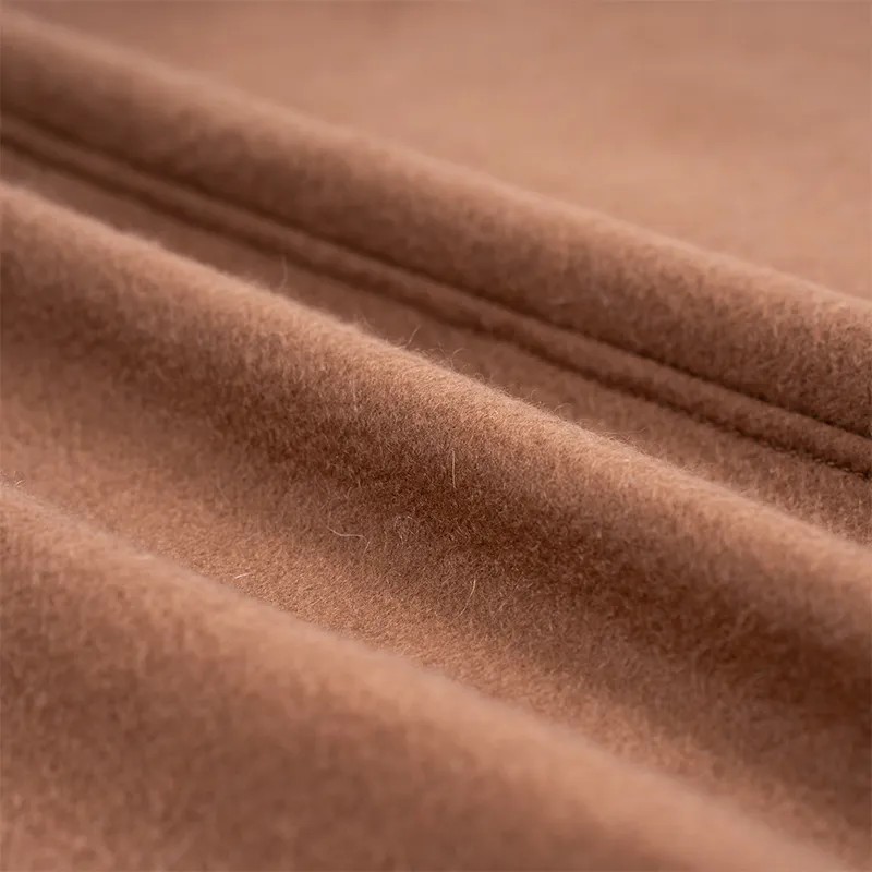 Края отделаны мехом кролика, текстура которого тонкая и плюшевая. Техника «шеарлинг», характеризующаяся градиентом коричневого и белого цветов, добавляет глубины, умело сочетая тепло кашемира с роскошной мягкостью кроличьего меха.